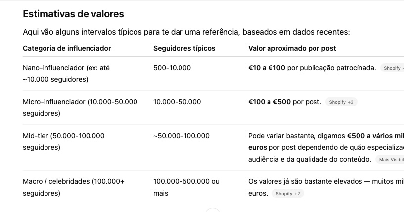 Confira as estimativas de valores cobrados para publicação de posts em perfis de influência (marketing de influência):